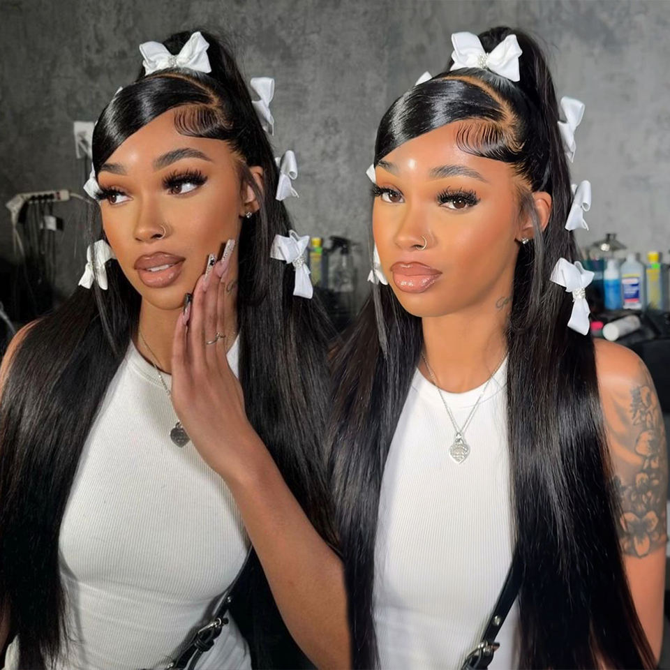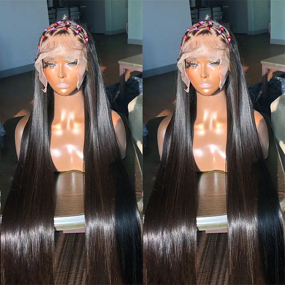 Vente en gros de haute qualité attachée à la main 180% cheveux vierges pleine perruque à dentelle longue ligne droite transparente HD vendeurs de cheveux naturels meches