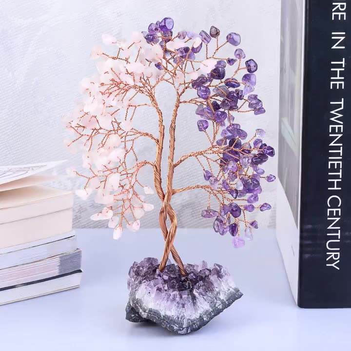 Wholesale High Quality Handmade Gemstone Amethyst Cluster Base Tree of Life Fengshui Fortune Money Luck Healing Crystal Tree