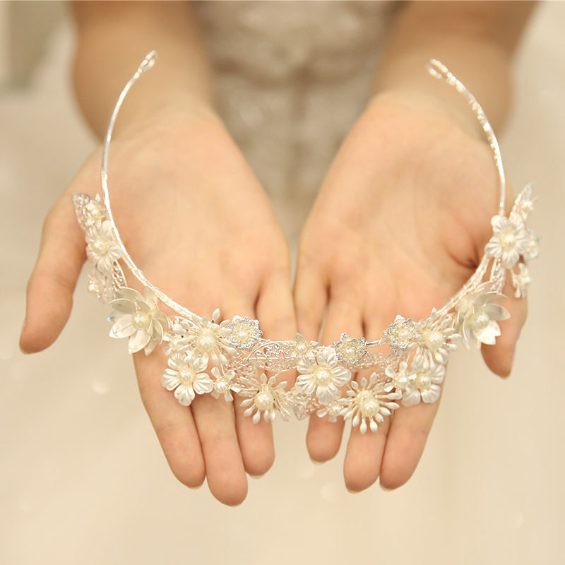En gros De Haute Qualité En Argent Faits À La Main Accessoires De Cheveux De Mariage De Mariée Perle Tiara Couronne