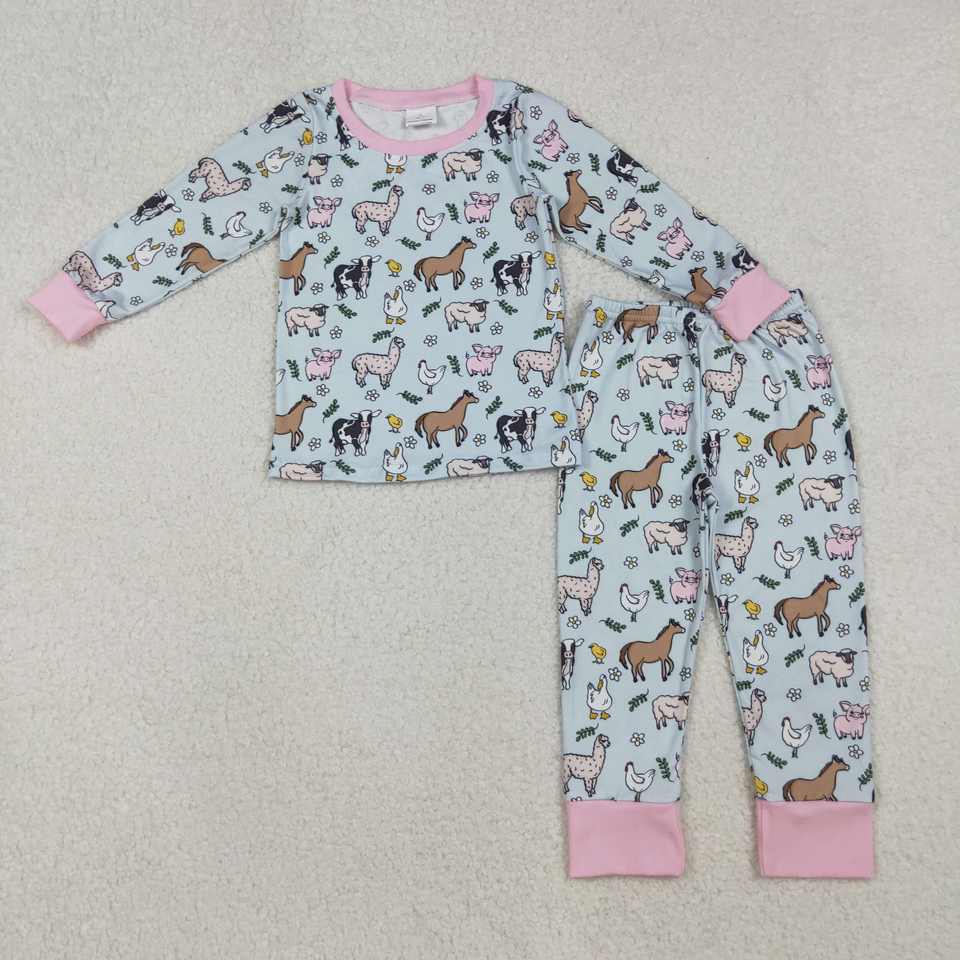 Wholesale High Quality Kids Girls Ready to Ship Clothing No MOQ Comfortable Soft Long Sleeve Animal Print Pajama Outfit