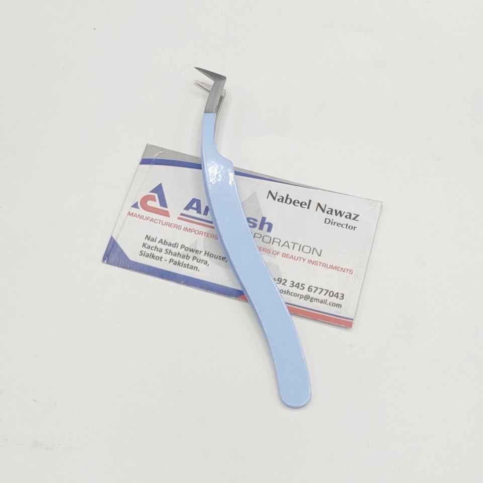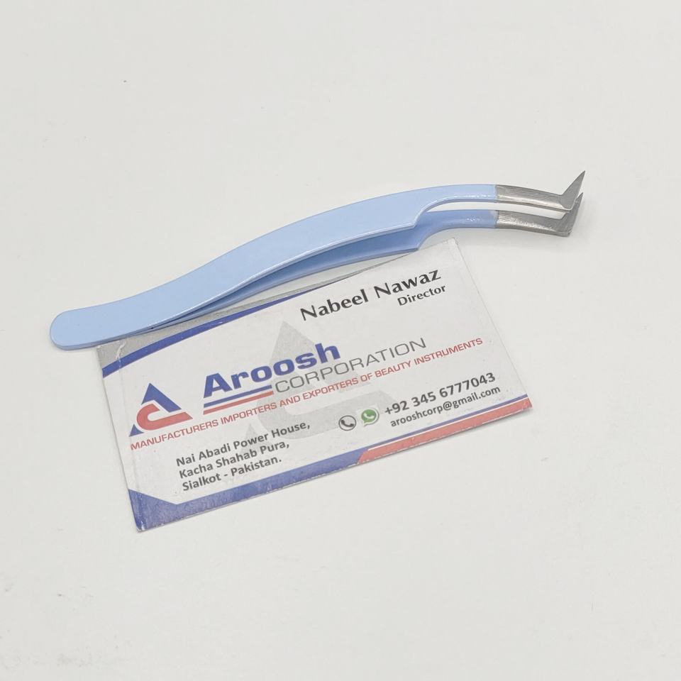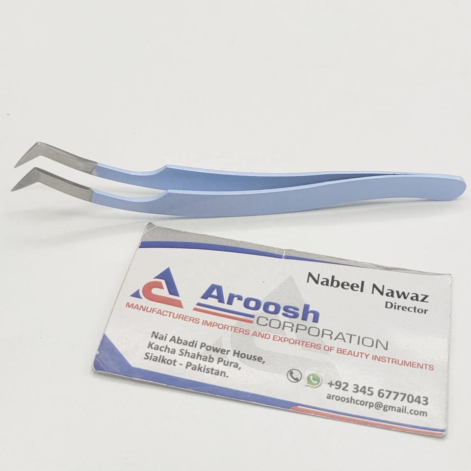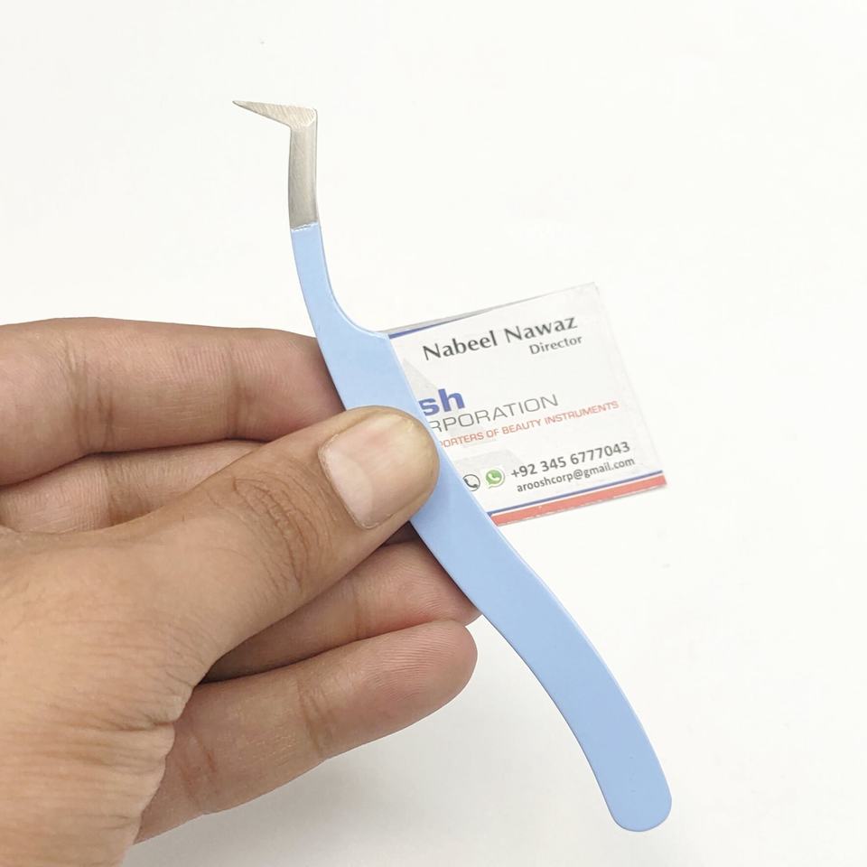 Pince à épiler professionnelle en acier inoxydable bleu bébé russe de type L, de haute qualité, durable, à pointe fine, pour extensions de cils (vente en gros)