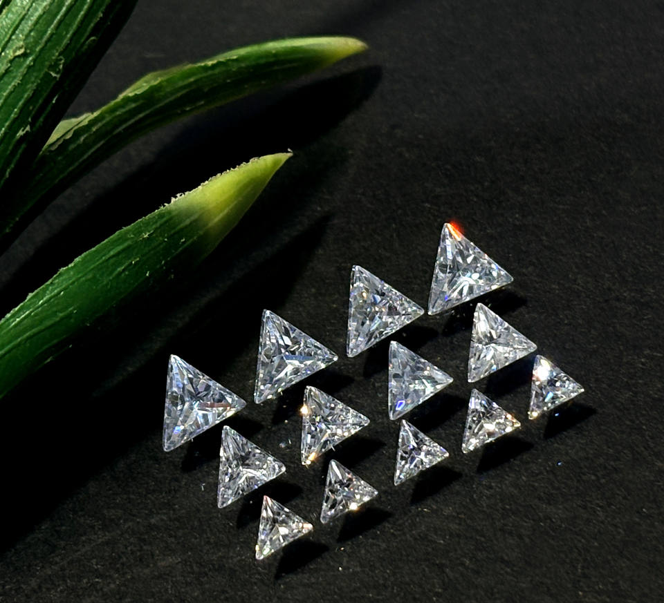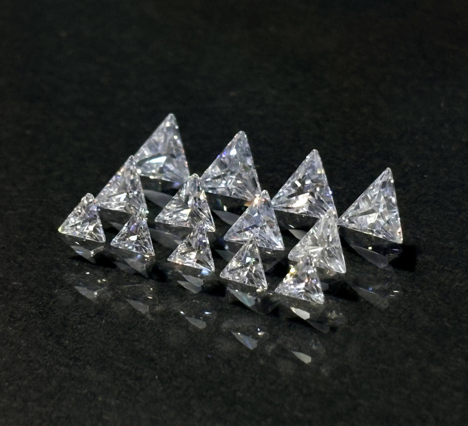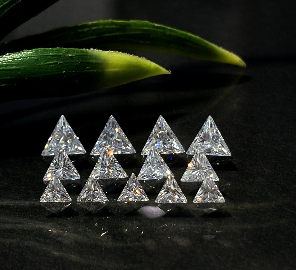Vente en gros de pierres de moissanite blanches de haute qualité, de laboratoire, taille trillon, avec effet de couleur et de feu, 3mm-10mm, 0.1-5.0 carats, traitées thermiquement, troisième génération