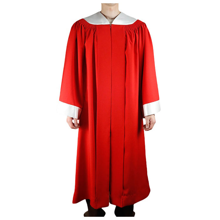 Robes de choeur Corona rouge mat de haute qualité en gros avec bandes de manches en satin