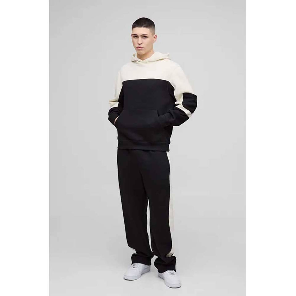 Wholesale High Quality Men's 100% Cotton 2 piece set Baggy Sweatsuit custom screen Printed logo 2 tone streetwear man tracksuit