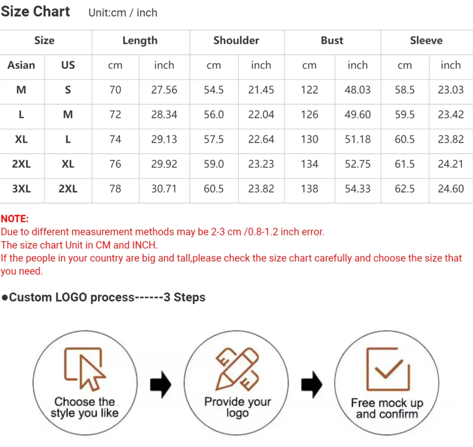 Logo position:Front, back, Left Sleeve, Right Sleeve, lower hem, back neck