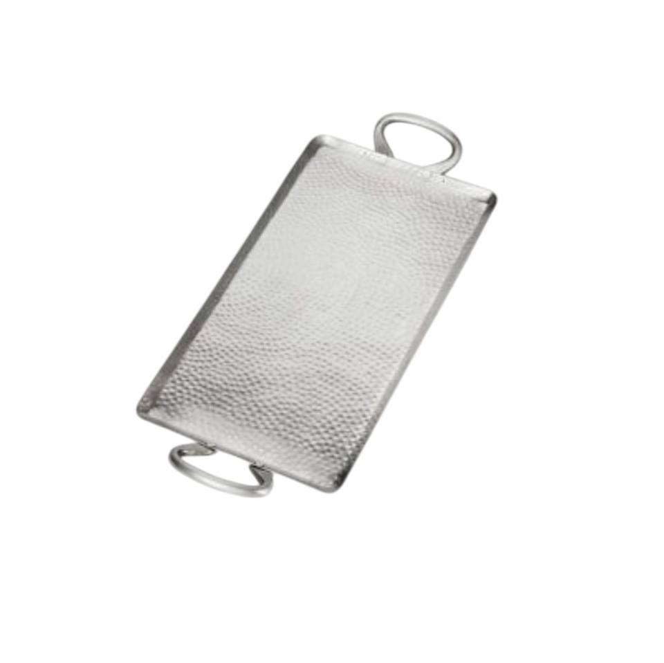 Plateau de service rectangulaire en acier inoxydable martelé de haute qualité avec poignées, artisanat métallique léger pour mariage, vente en gros