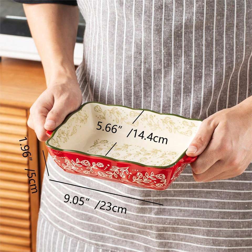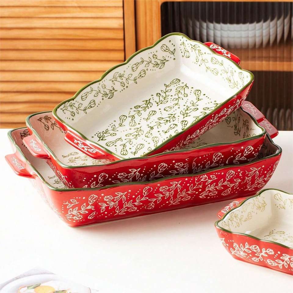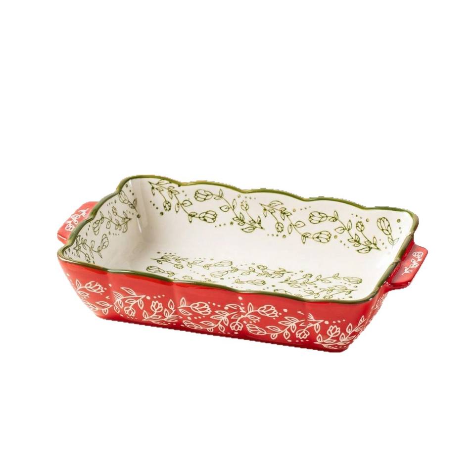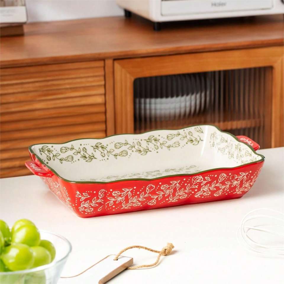 Plat de cuisson rectangulaire en céramique rouge de haute qualité, motif vintage peint à la main, pour gâteaux, pizzas, pâtes, vaisselle de cuisine – Vente en gros