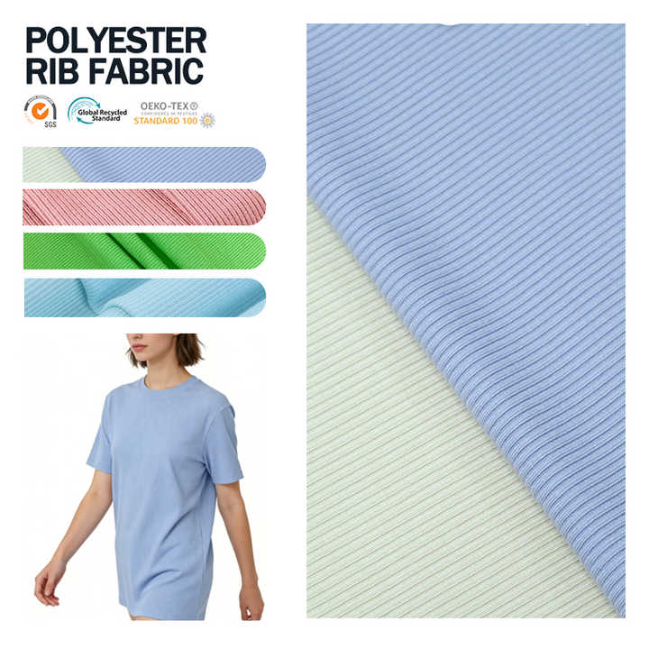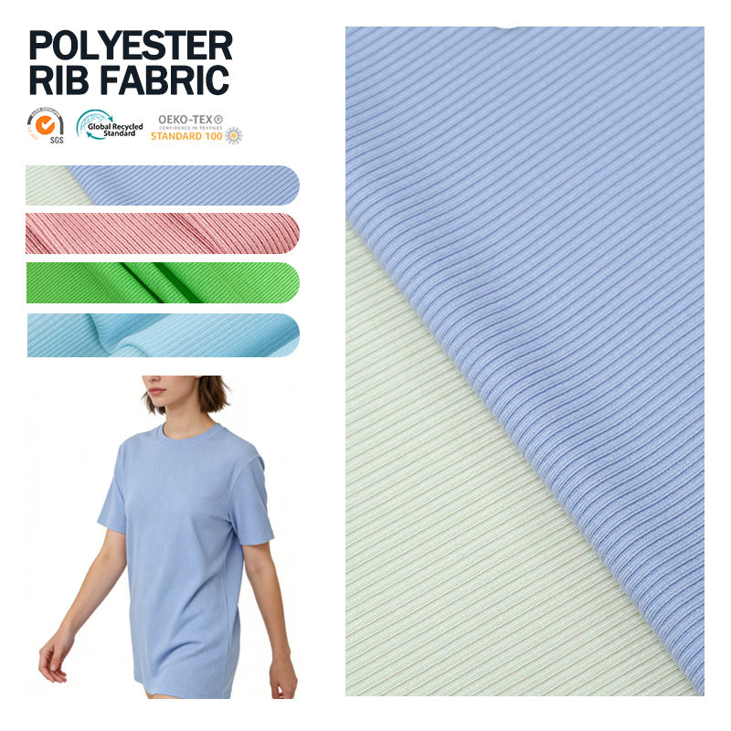 Tissu côtelé en polyester 1x1 de haute qualité, lisse et polyvalent, pour col et poignets de vêtements, vente en gros