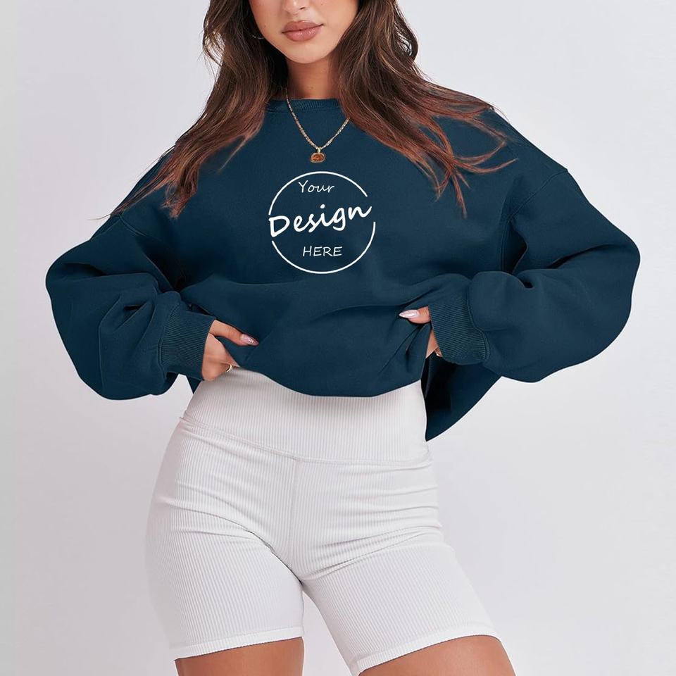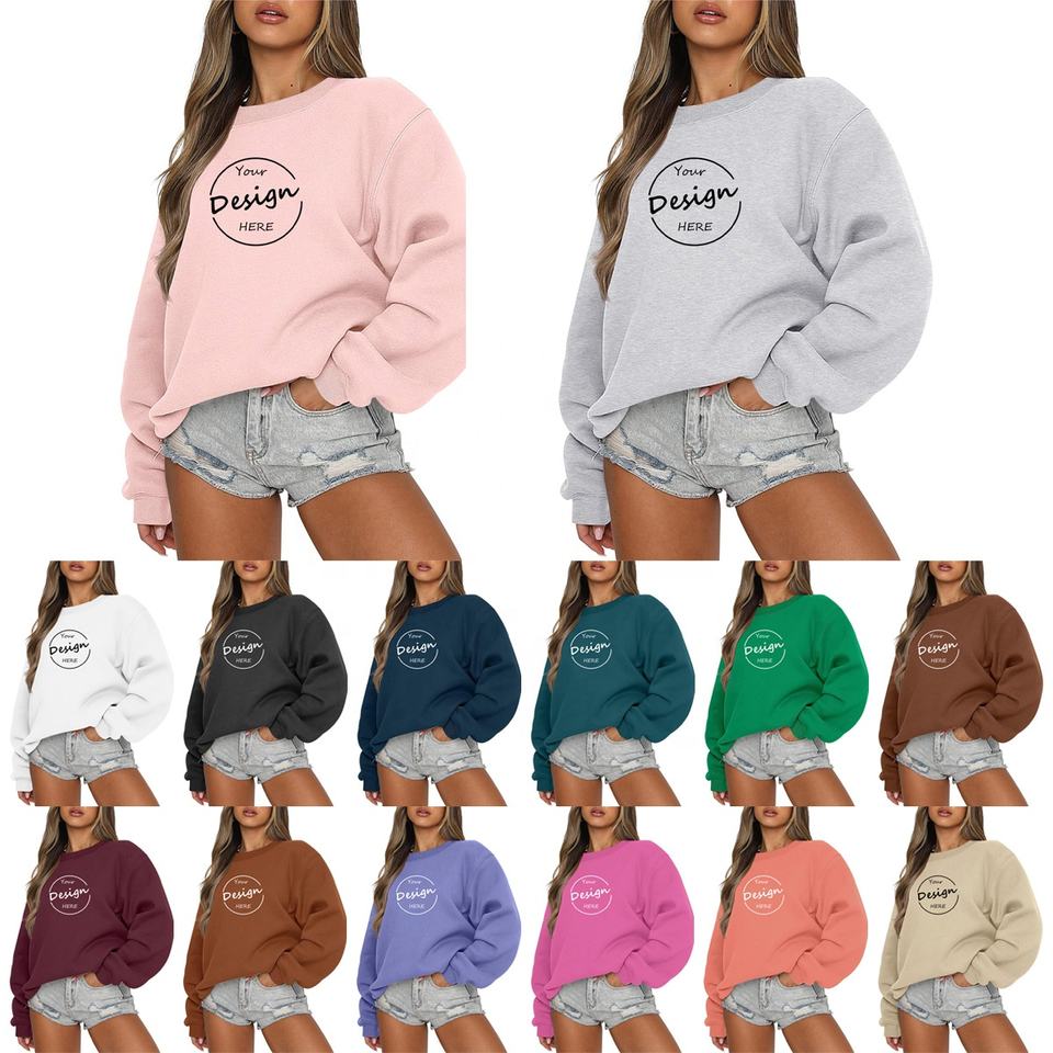 Sweat-shirt à col rond surdimensionné en molleton de coton doux de haute qualité en gros, coupe ample, broderie, couleur unie