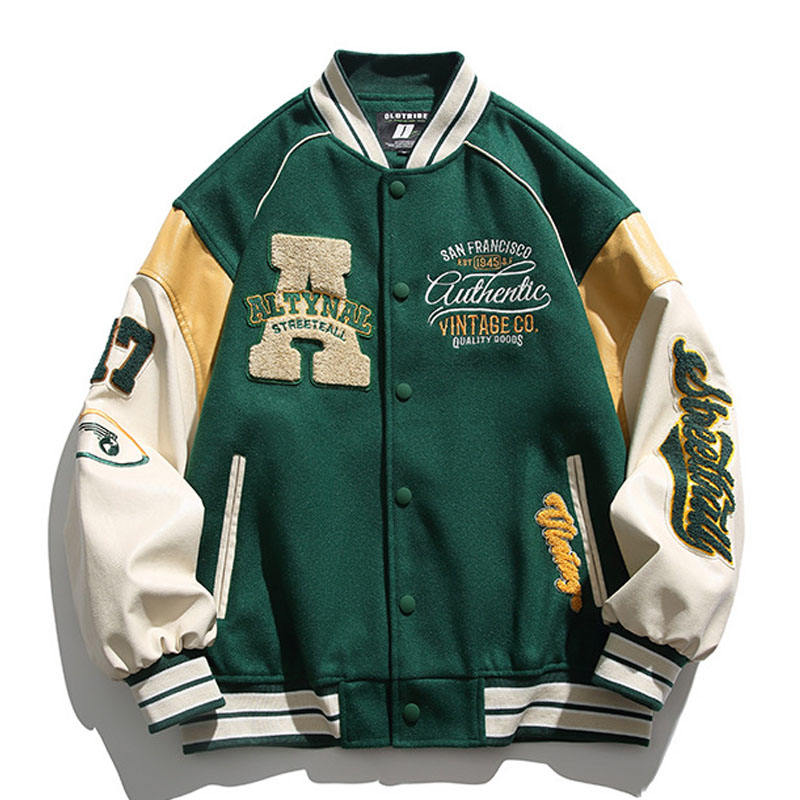 Veste universitaire de haute qualité pour hommes vente en gros de manches en cuir brodé en chenille vestes universitaires Letterman de baseball personnalisées