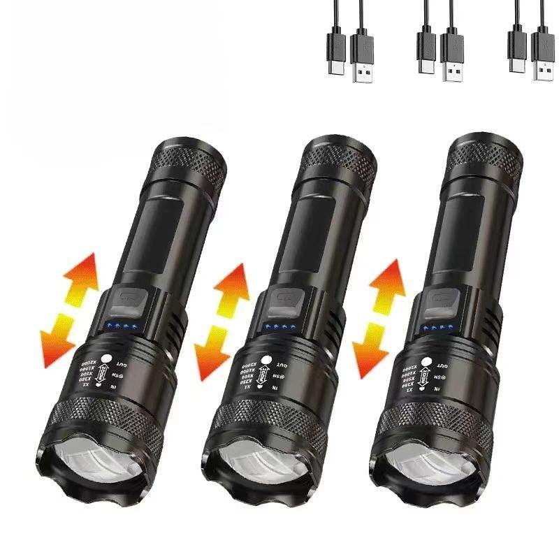 Lampes de poche LED ultra-puissantes en gros avec affichage lumineux, recharge USB, pour camping, pêche et situations d'urgence