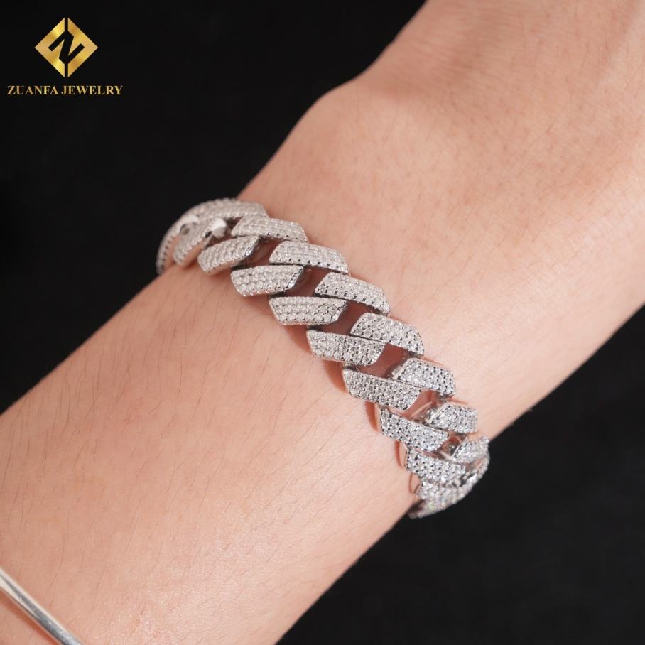 Wholesale Hip Hop Jewelry 13mm Bracelet Iced Out VVS Moissanite Cuban Link Chain Bracelet Diamond Men Pass Diamond Tester