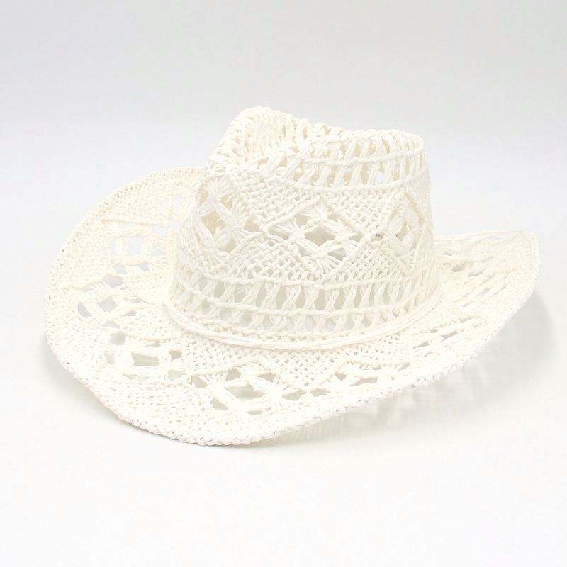 Chapeau de cowboy en paille tressée ajourée pour femme, idéal pour la plage et l'été, protection solaire pour les voyages