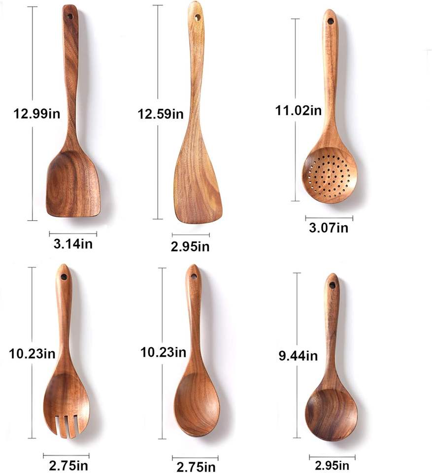 Vente en gros d'ustensiles en bois de teck naturel pour la maison et la cuisine pour outils de cuisson Cuillères en bois pour la cuisine Ensemble d'ustensiles en bois antiadhésifs