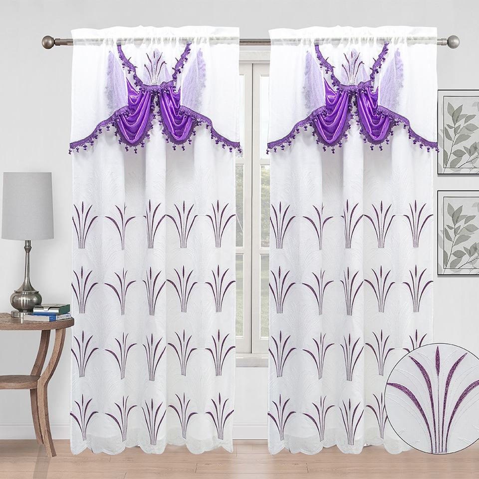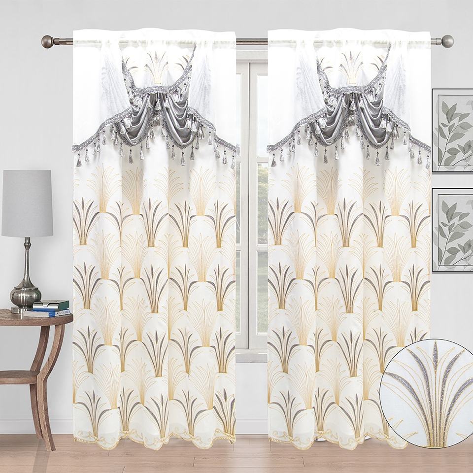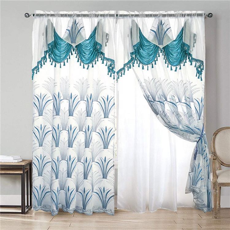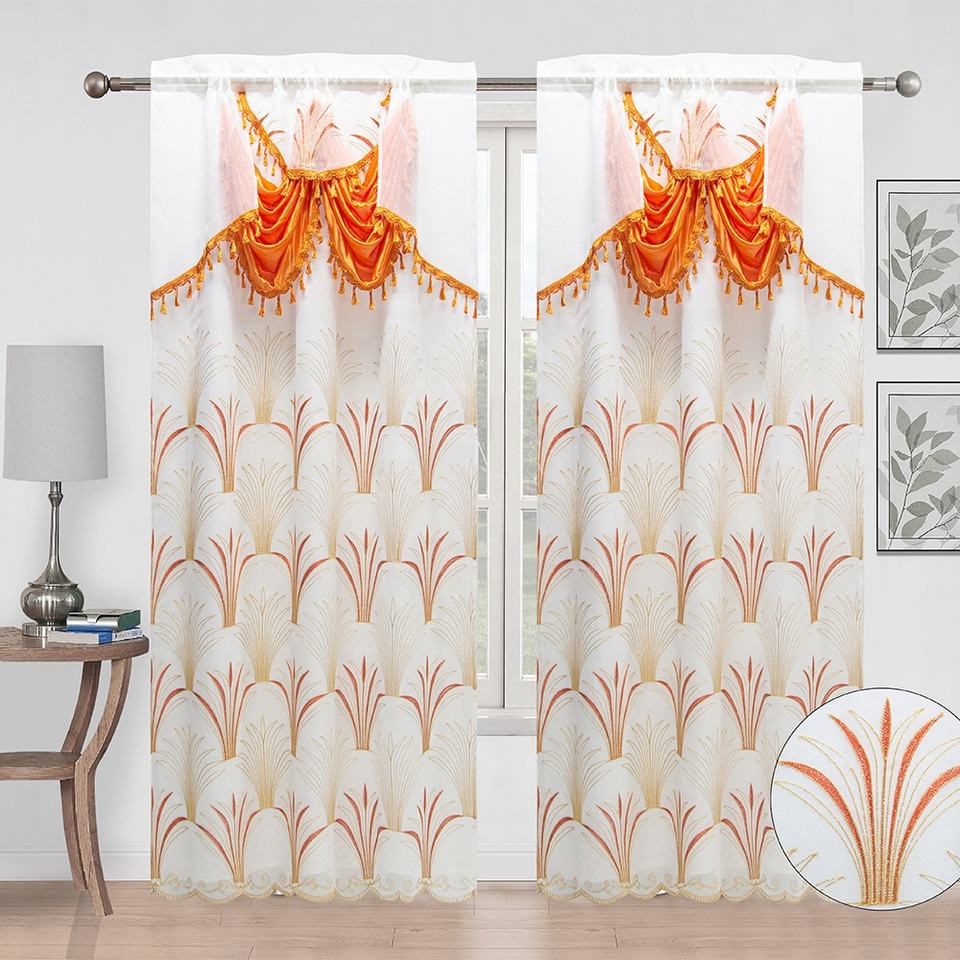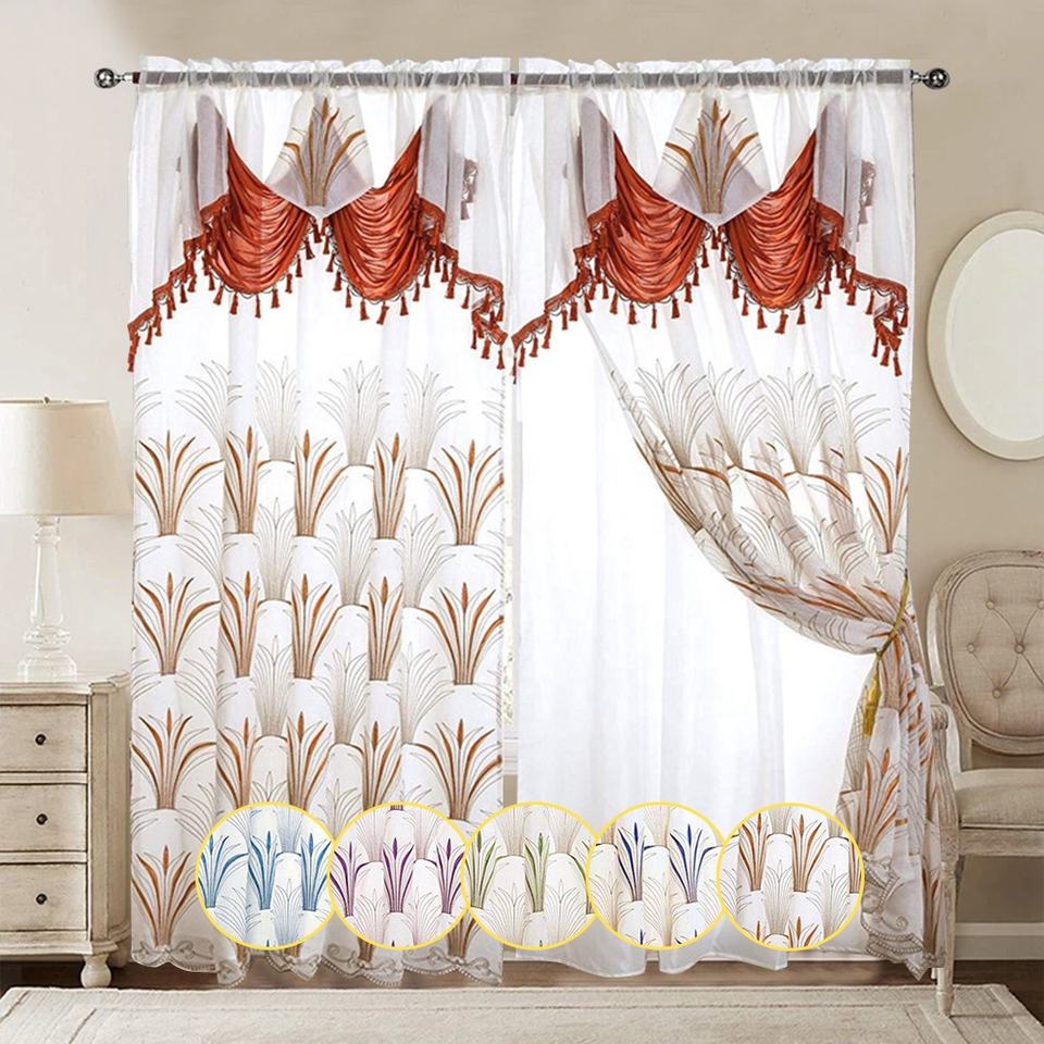 Double Rideaux Voilage Brodés Jacquard Classiques pour Salon, Prêts à Poser, avec Doublure, Prix Grossiste