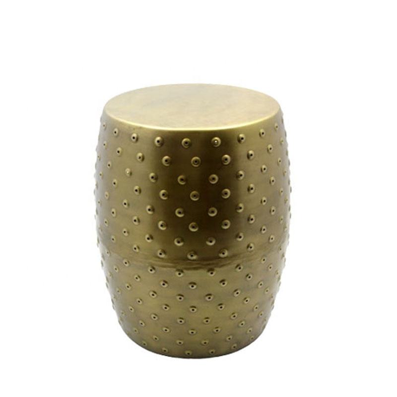 Vente en gros de meubles de maison tabouret rond en fer en forme de tambour en laiton fini antique poufs et table d'appoint pour le salon