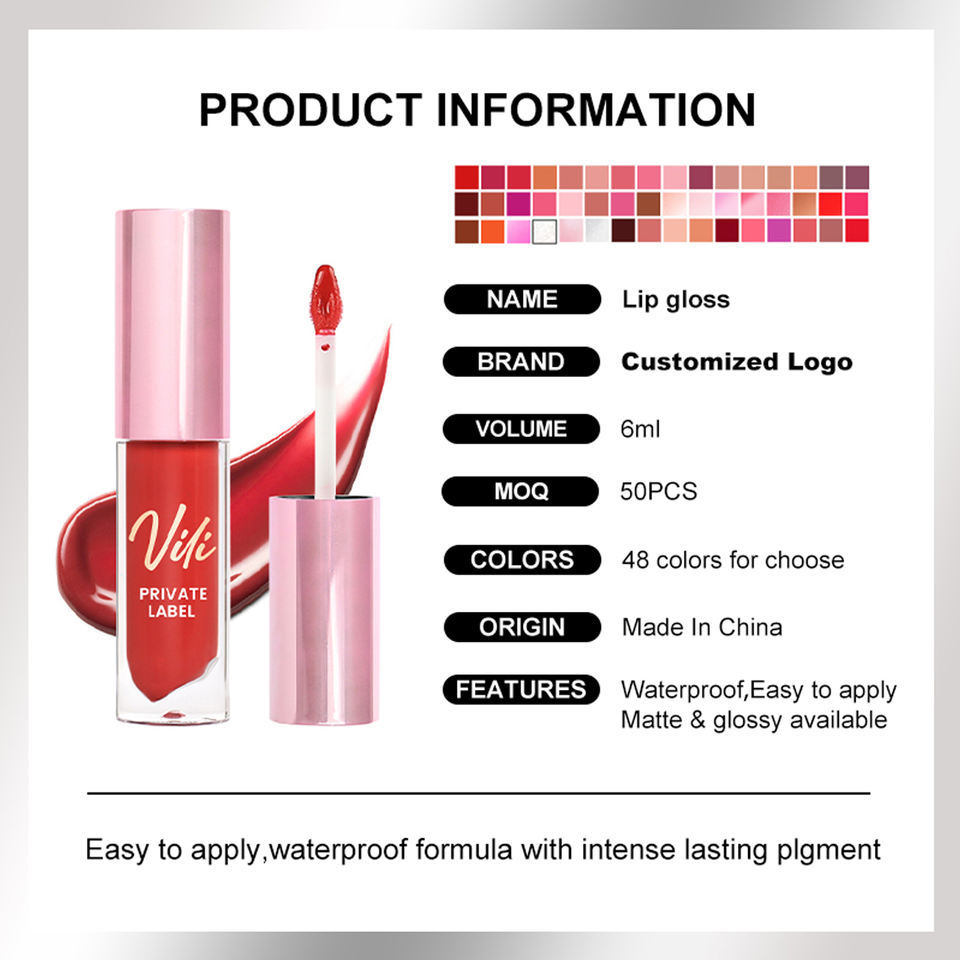 Vente en gros, vente à chaud, brillant à lèvres étanche avec logo personnalisé et contenants et emballage de brillant à lèvres lifter