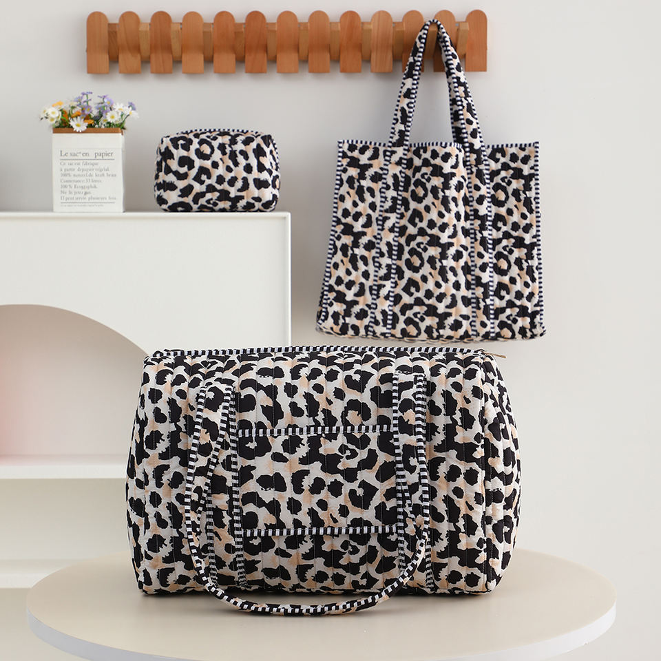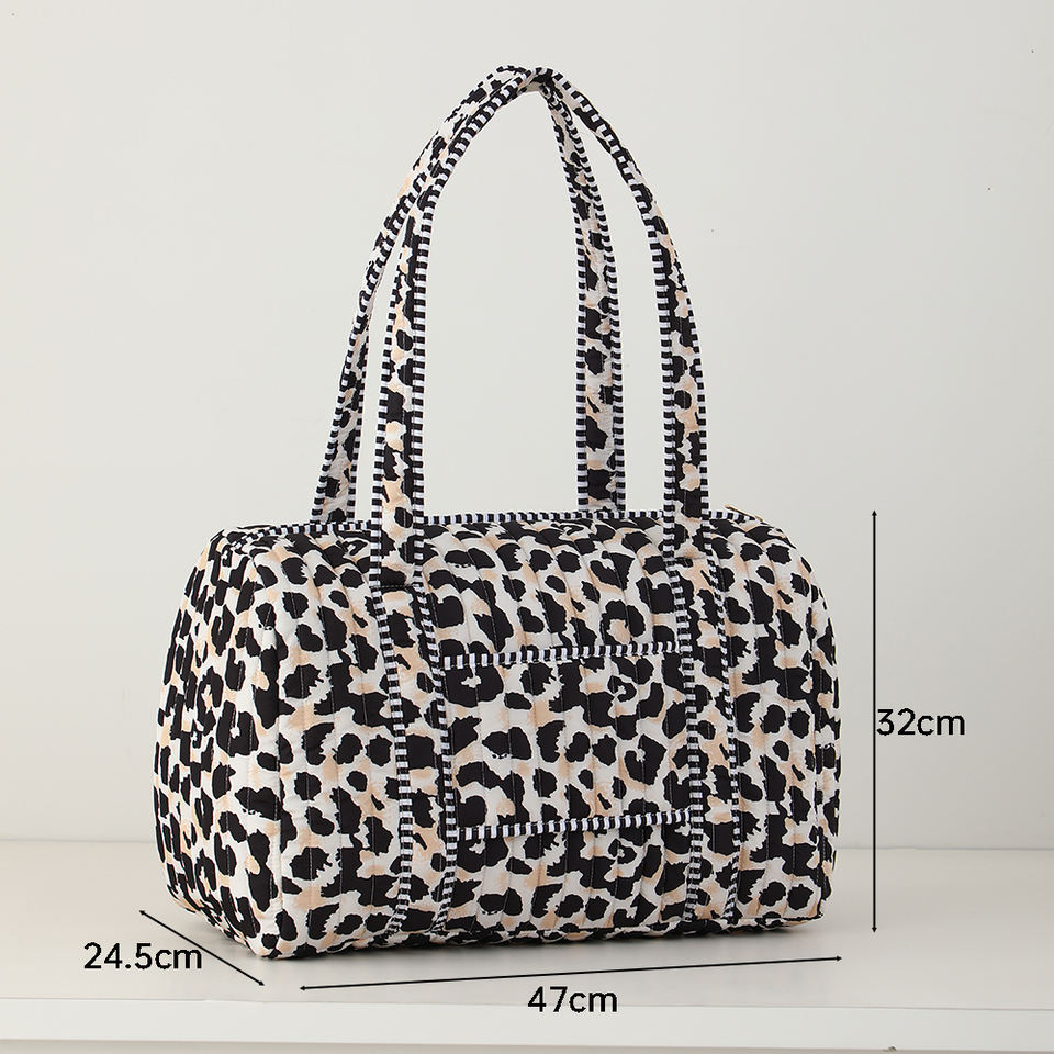 Sac de voyage matelassé en polyester à imprimé léopard, grande capacité, vente en gros