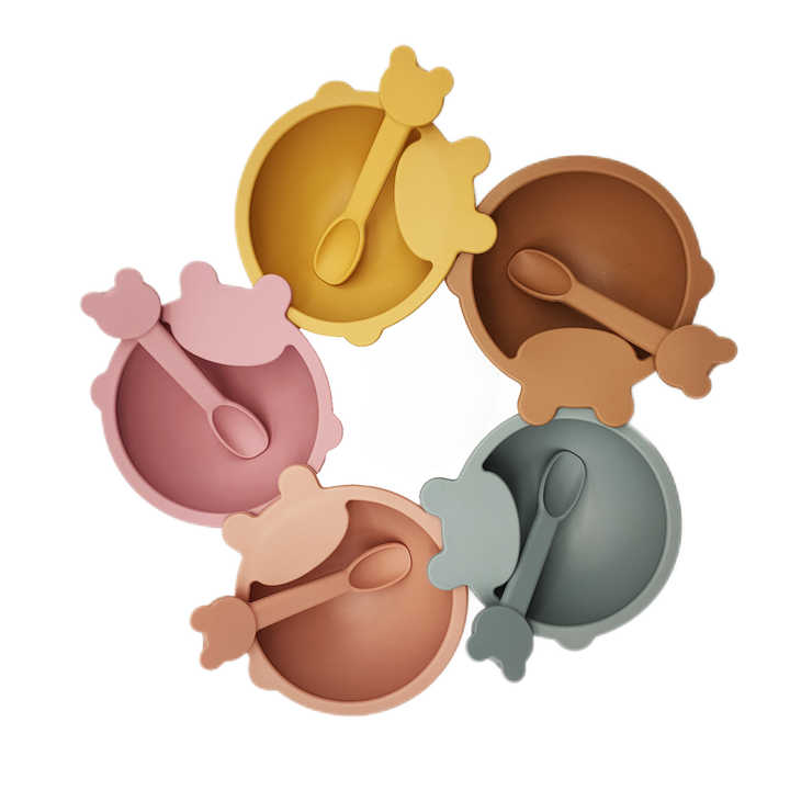 Vente en gros, table de table pour enfant, forte ventouse, napperon en Silicone de qualité alimentaire, bol pour bébé avec ensembles de cuillères