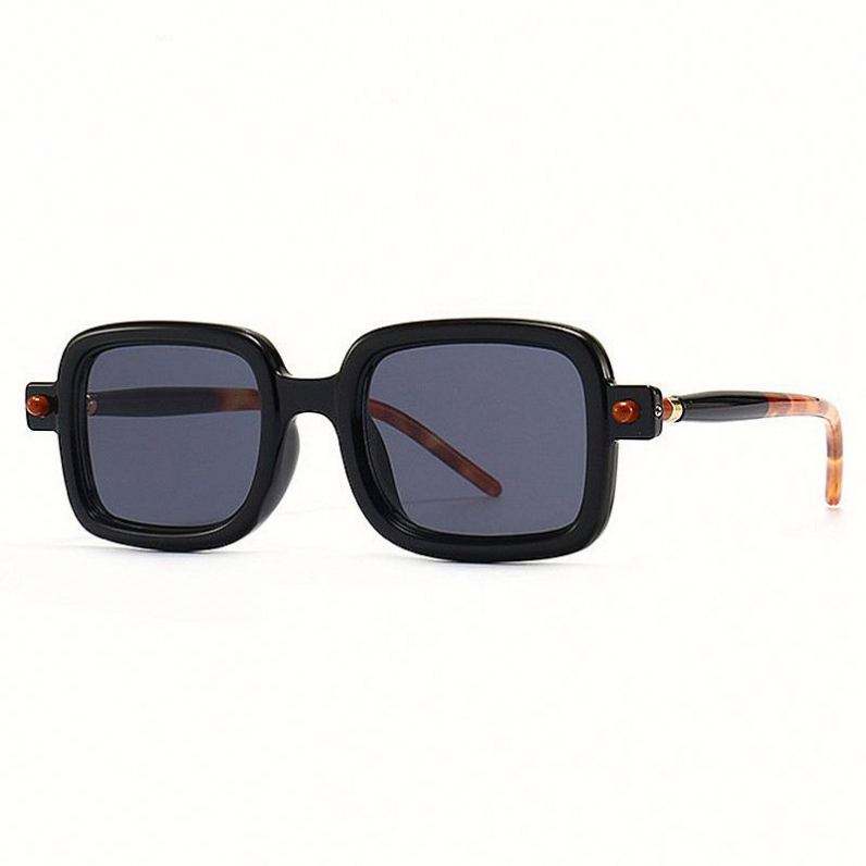 Vente en gros de lunettes de soleil classiques vintage à rivets noirs transparents, lunettes de soleil carrées de petite taille pour hommes