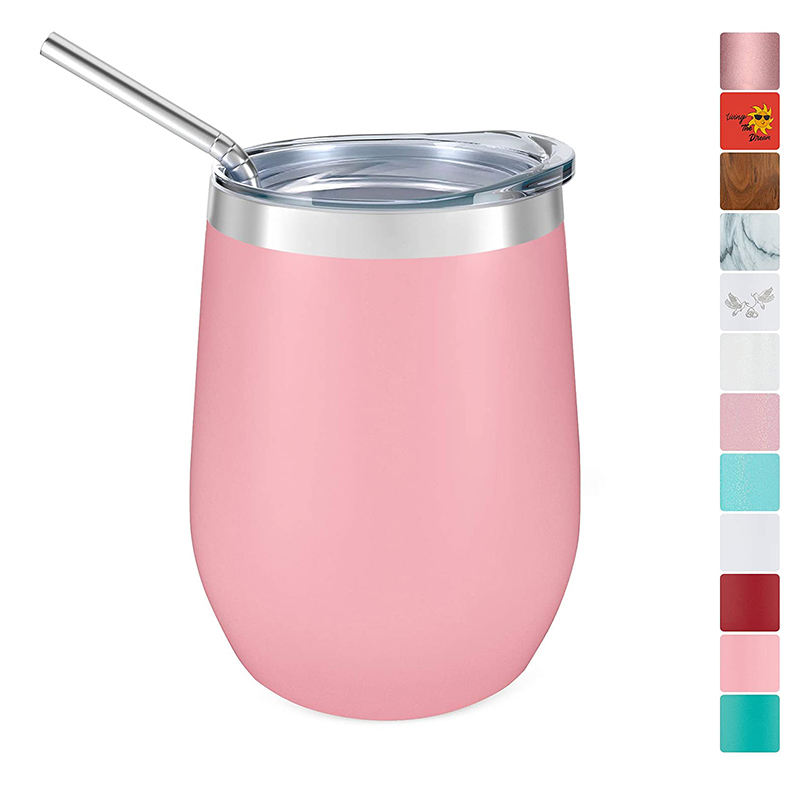 Vente en gros de gobelets à vin isothermes à double paroi personnalisés avec logo, 12 oz, anti-fuite, avec poignée et couvercle, en vrac