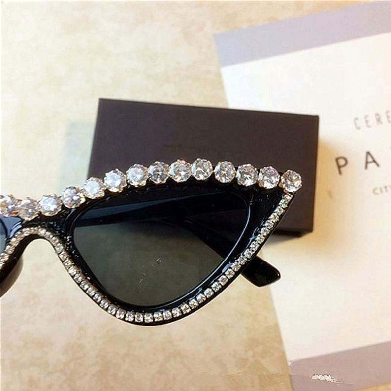Vente en gros de lunettes de soleil de luxe à la mode avec strass, lunettes de soleil vintage pour femmes, lunettes de soleil œil de chat pour femmes