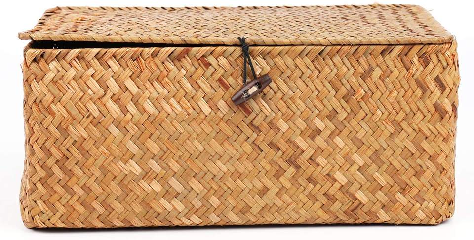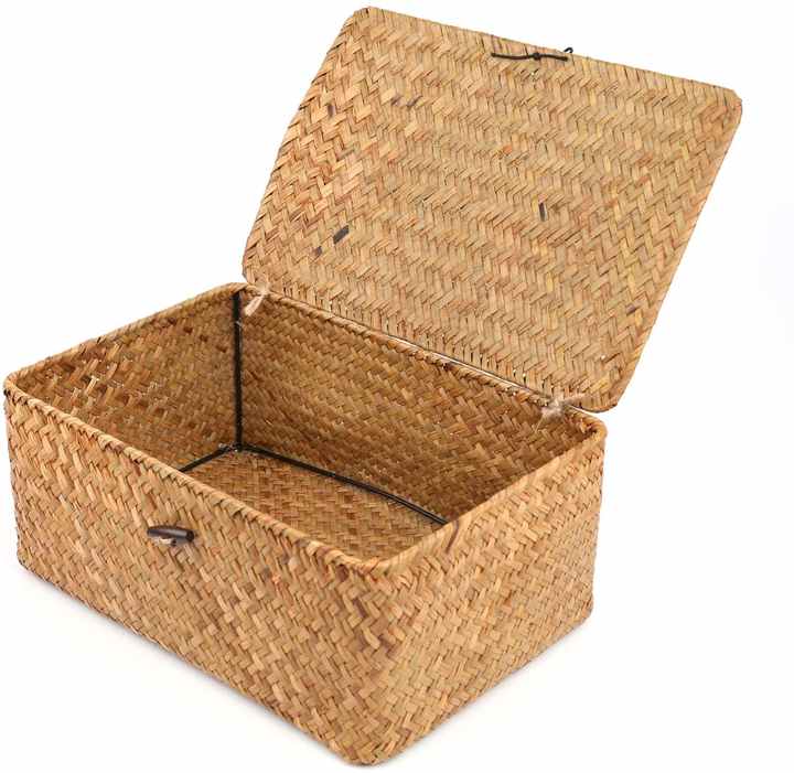 Nom du produit:Amazon Vente Chaude Tissé En Osier Bacs De Rangement avec Couvercle Ensemble de 3