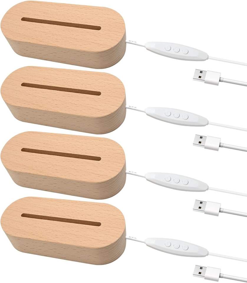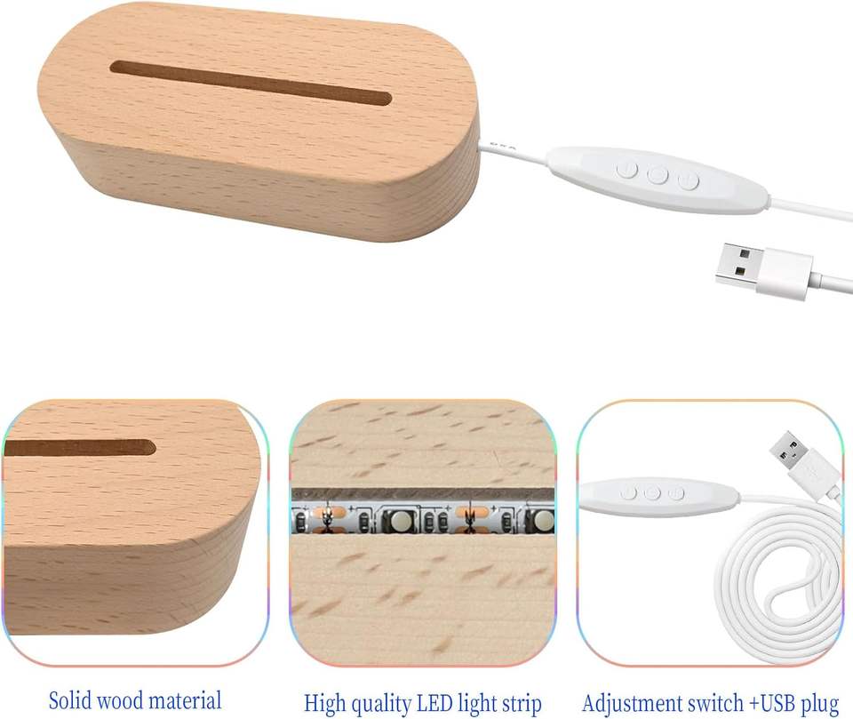 Lampe de chevet 3D en acrylique avec base en bois et résine, LED USB 7 couleurs, vente en gros, best-seller