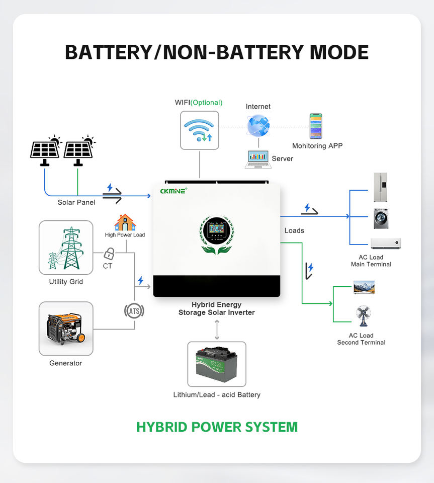 Onduleur solaire hybride en gros, double sortie MPPT, 12 kW, 12 kVA, 12 000 W, monophasé, hors réseau, pour système de stockage d'énergie domestique