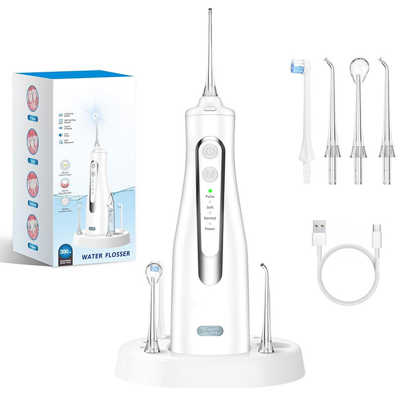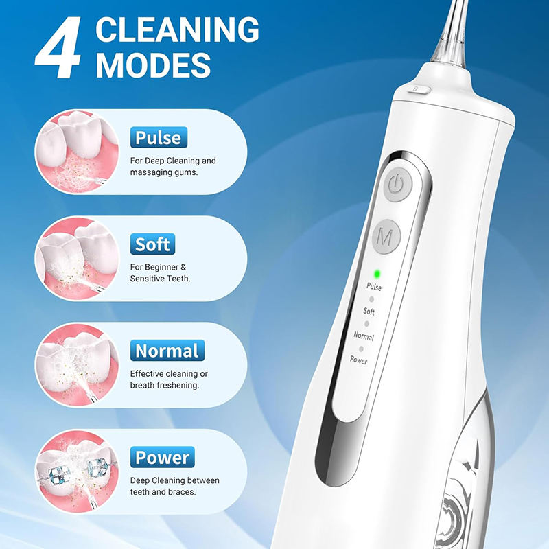 Hydropulseur électrique sans fil étanche IPX7 à rotation 360° avec 4 modes et 4 embouts pour le nettoyage des dents (vente en gros)