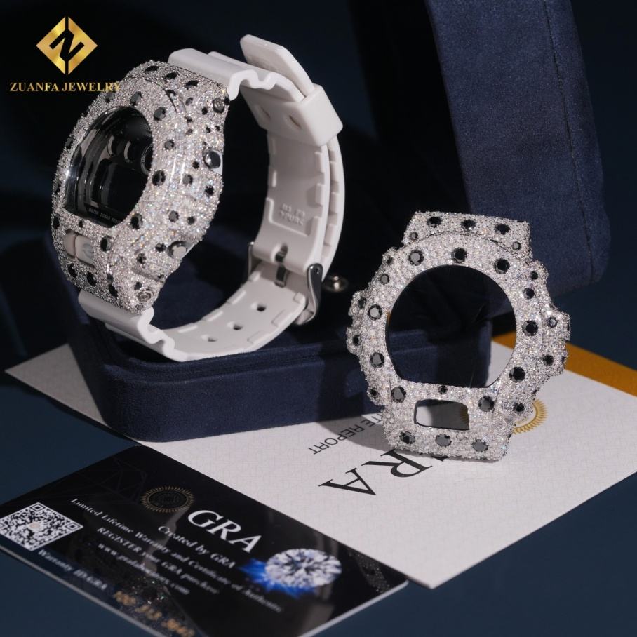 Montre-bracelet en quartz de haute qualité, sertie de pierres, outils et pièces, VVS noir avec lunette et cadran en moissanite, BussDown DW6900