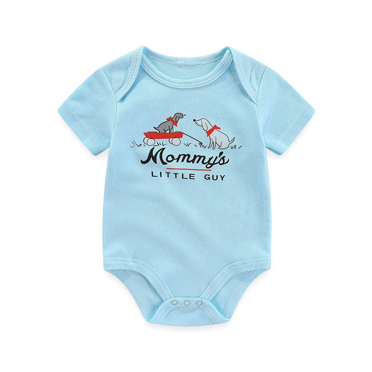 Vente en gros en stock 0-24M Combinaison unisexe en coton biologique mignonne à manches courtes avec fermeture à boutons pression respirante et douce pour bébé