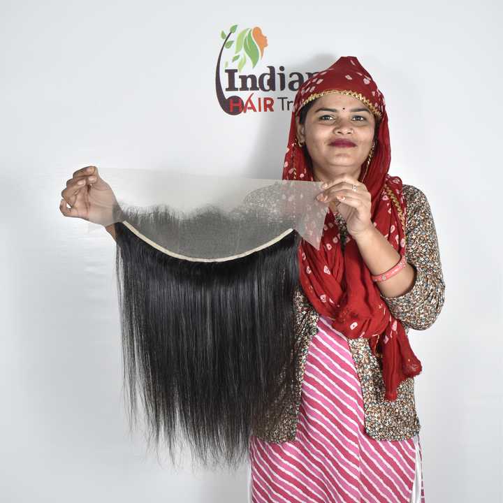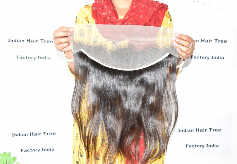 Extensions frontales en cheveux humains indiens Remy, lisses et doux, couleur naturelle noire, cheveux vierges à ondulations profondes, vente en gros