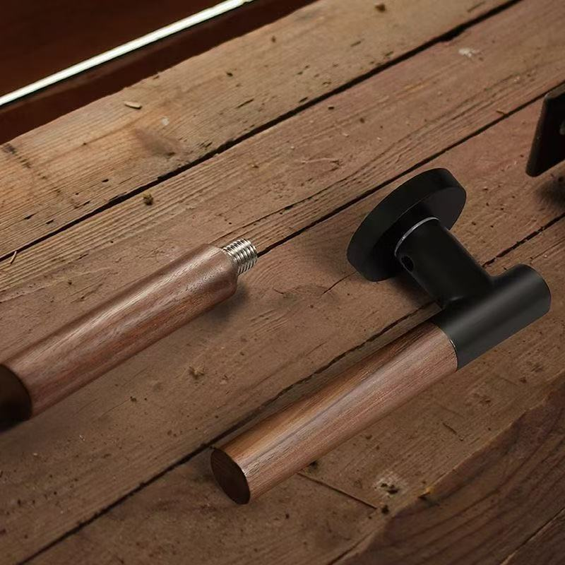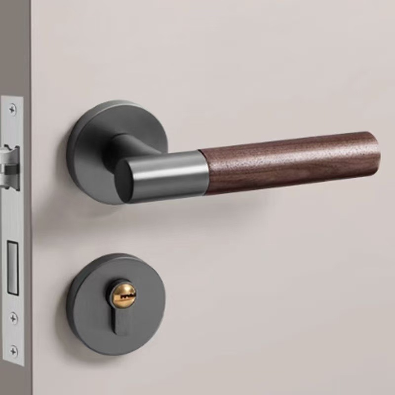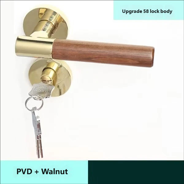 Ensemble de poignées de porte intérieures en gros, finition grain de bois doré, style moderne et minimaliste, serrures de porte en alliage d'aluminium pour la maison