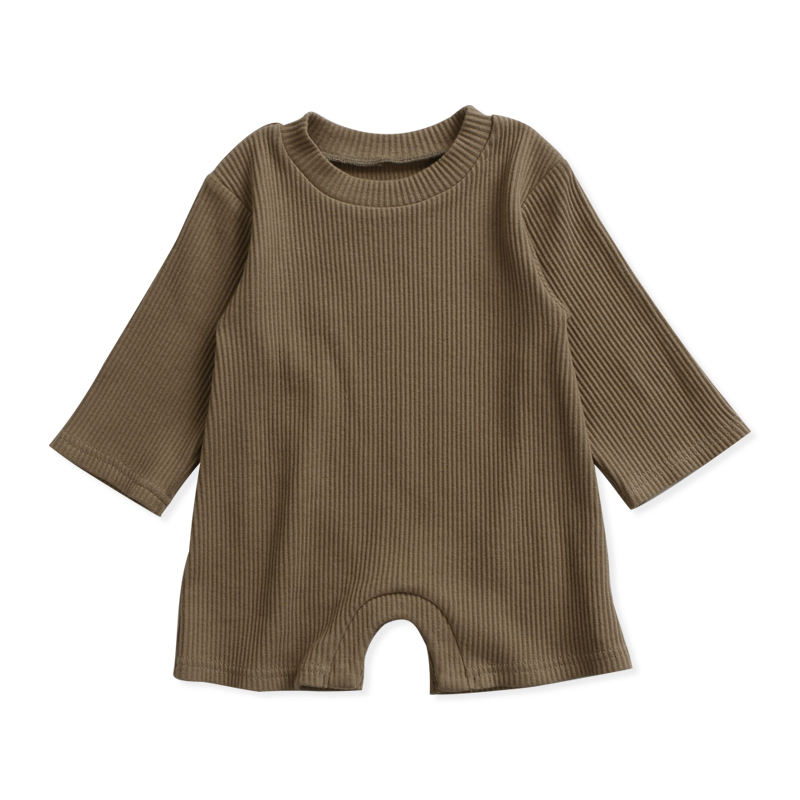 Vêtements pour bébés et tout-petits en gros, Combinaison côtelée en coton à manches longues pour enfants, Barboteuse de printemps pour bébé