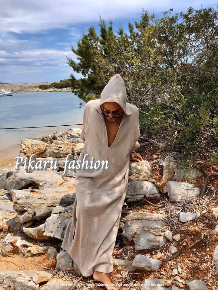 Robe islamique pour hommes en gros, robe arabe, caftan en lin pour hommes avec capuche
