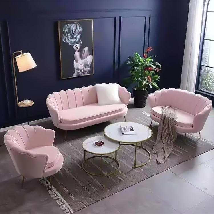 Wholesale Italian New Design Hot Sale Comfortable Modern Hotel Living Room Furniture Luxury Velvet Fabric Petals Sofas Set