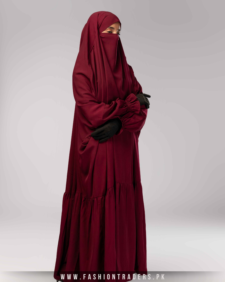 One Piece Ruffle Jilbab with Elastic Ruffle Sleeves