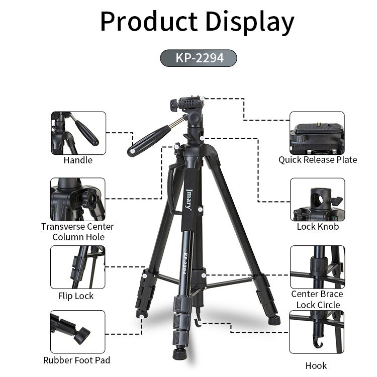 Vente en gros Jmary KP2294 colonne centrale rotative en alliage d'aluminium support axe horizontal monopode Jmary trépied pour appareil photo reflex numérique