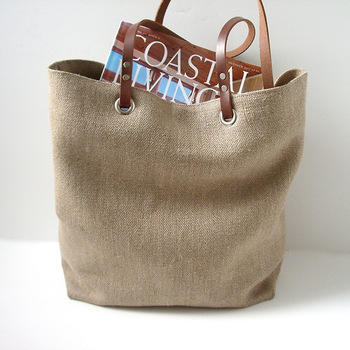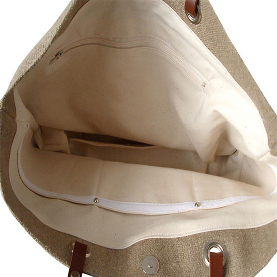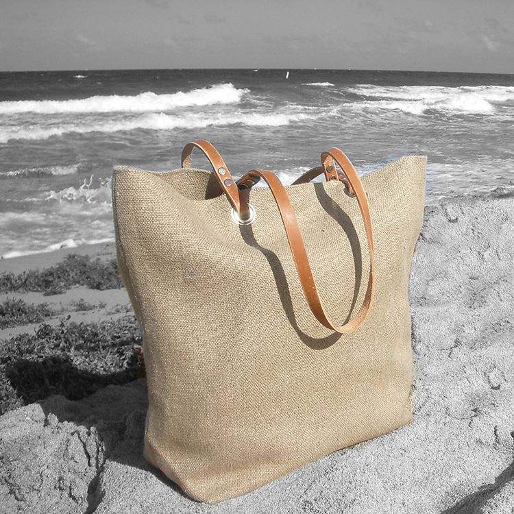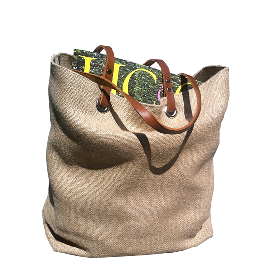 Material:Jute+PE coating+leather handles