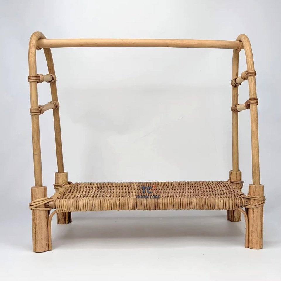 Porte-vêtements pour poupées en rotin naturel d'intérieur pour enfants en gros Mini porte-vêtements en rotin pour salle de jeux Chambre d'enfants faite à la main