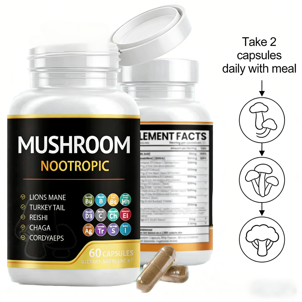 Capsules de champignons, suppléments nootropiques pour le cerveau