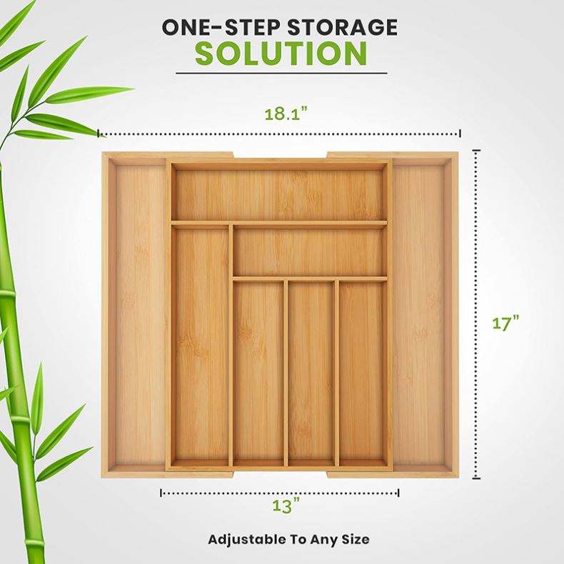 Organisateur de tiroir extensible en bambou pour ustensiles de cuisine, écologique, durable et moderne, vente en gros