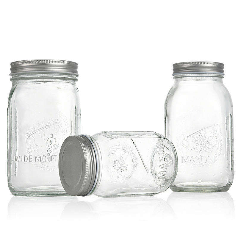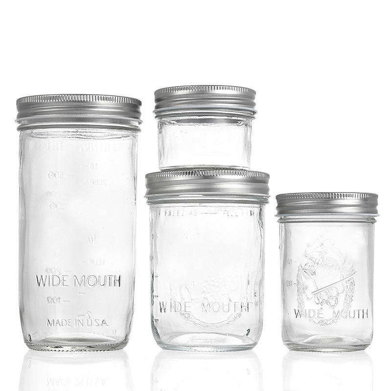 Vente en gros de bocaux de stockage dans la cuisine bocal en verre de 4oz 8oz 12oz 16oz fournisseur bocaux Mason à large ouverture avec couvercle