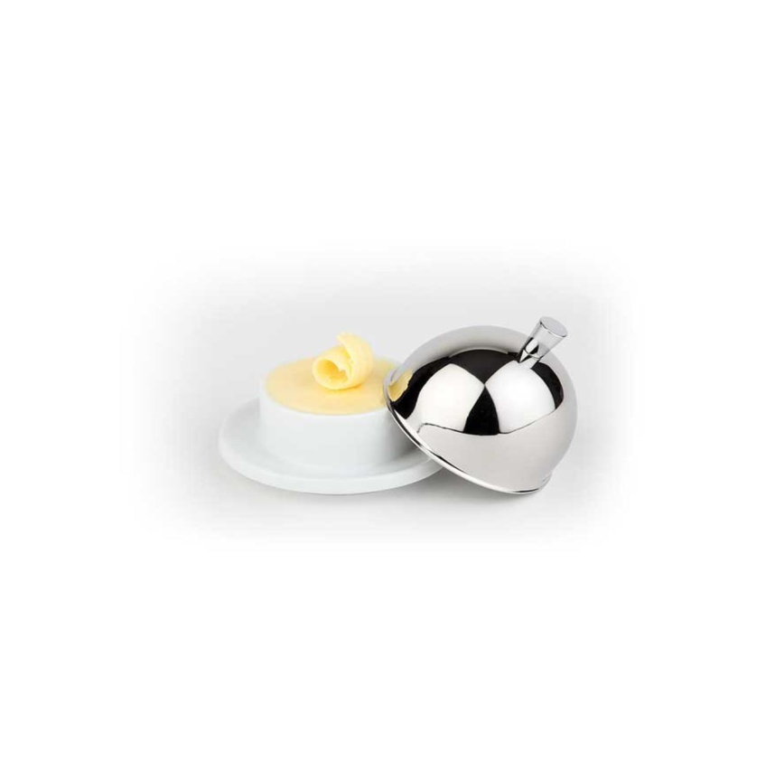 Vente en gros récipient pour ustensiles de cuisine Beurrier en marbre en grès avec couvercle en acier de forme ronde et au meilleur prix