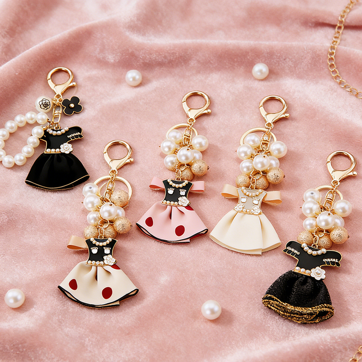 Porte-clés en métal avec nœud, perle et cristal, style INS coréen, plaqué couleur, fleur émaillée pour téléphone, sac, pendentif pour écouteurs CCD, vente en gros