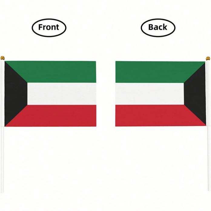 Drapeau du Koweït en gros, mini-drapeau à agiter à la main en polyester, équipé d'un mât en plastique ou en bois pour la décoration de la Journée nationale
