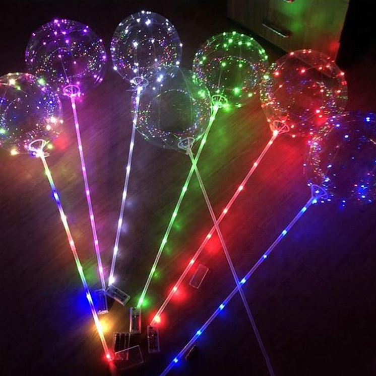 Ballons Bobo LED en gros, ballons Bobo transparents lumineux avec autocollants et lumière LED pour décorations de fête d'anniversaire et de mariage