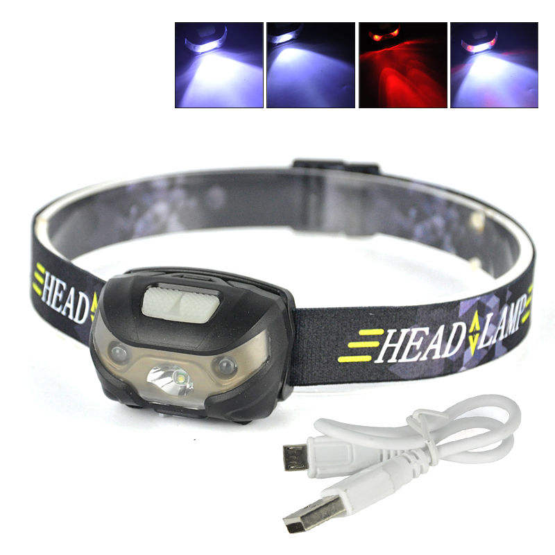 Lampe frontale à LED en gros avec bandeau réglable à 4 modes pour le camping, la course à pied, la pêche, lampe frontale à lumière rouge blanche et verte