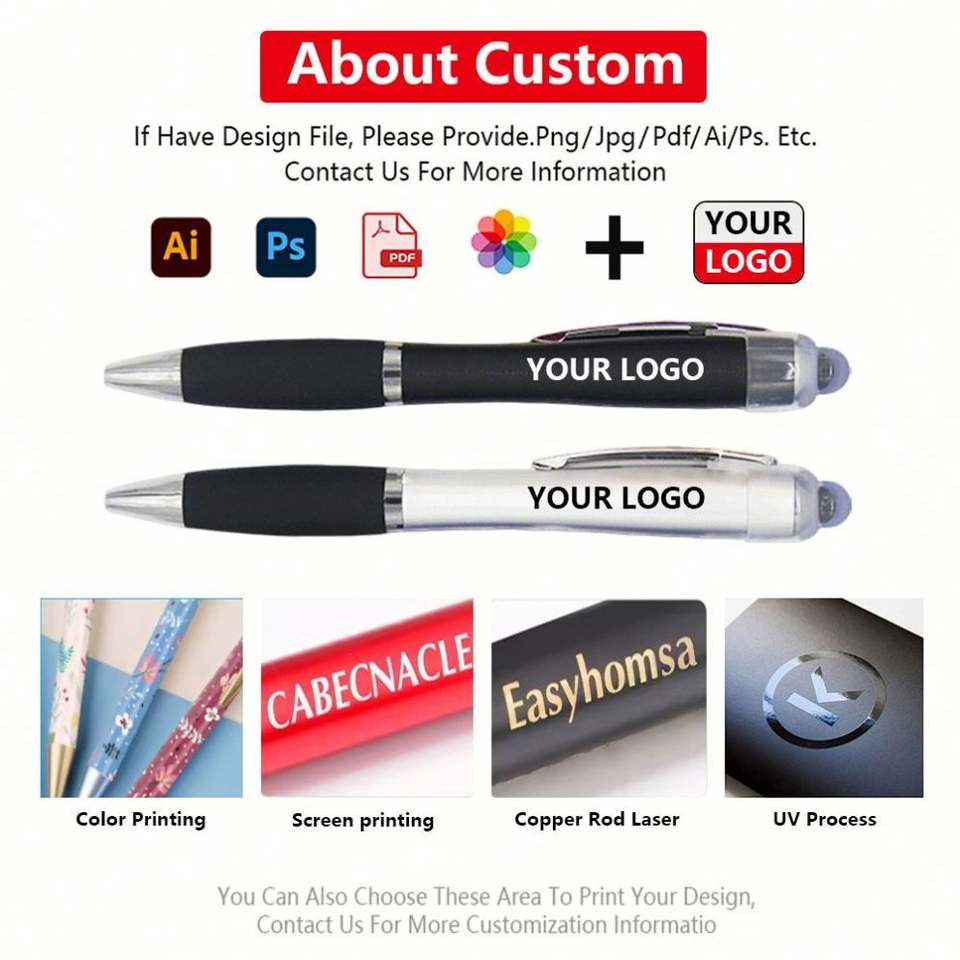 Stylo tactile LED lumineux en gros, stylo bille de haute qualité avec logo laser personnalisé pour cadeau promotionnel